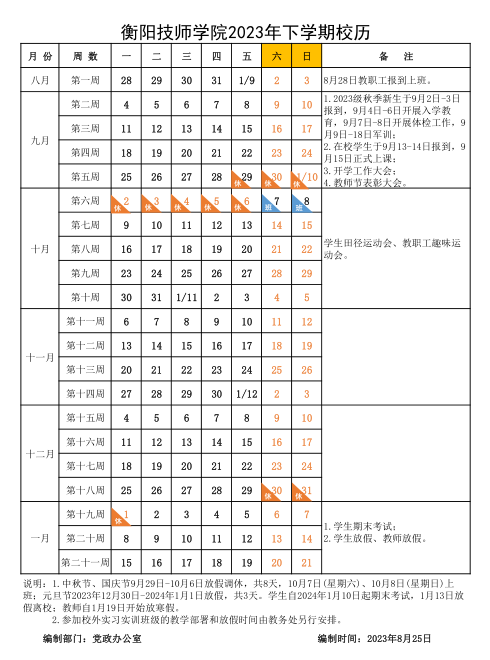 衡陽技師學院2023年上學期校歷
