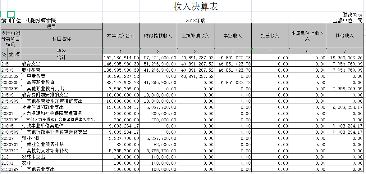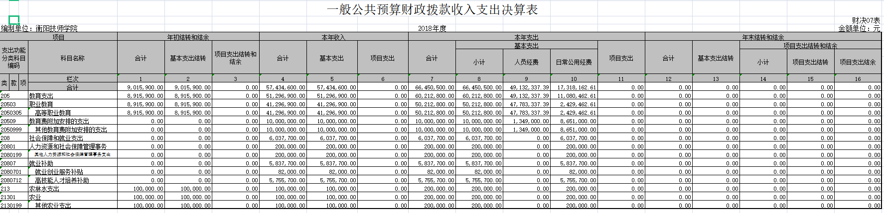 (二)決算單位構成。我院無二級預算單位,因此衡陽技師學2018年部門決算即衡陽技師學院本級2018年部門決算。