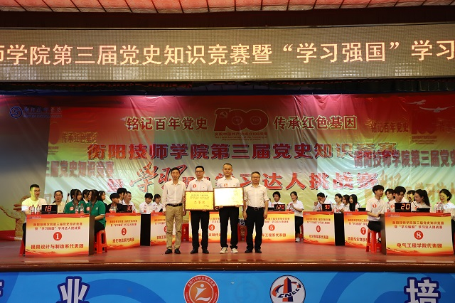 為持續(xù)深化黨史學(xué)習(xí)教育,激發(fā)學(xué)生對(duì)黨史知識(shí)學(xué)習(xí)的熱情,營(yíng)造學(xué)習(xí)黨史的濃厚氛圍,由宣傳統(tǒng)戰(zhàn)部、組織人事處、公共課部主辦、各系部及各黨(總)支協(xié)辦的衡陽(yáng)技師學(xué)院“銘記百年黨史,傳承紅色基因”為主題的黨史知識(shí)競(jìng)賽暨“學(xué)習(xí)強(qiáng)國(guó)”學(xué)習(xí)達(dá)人挑戰(zhàn)賽在學(xué)院大禮堂舉行。