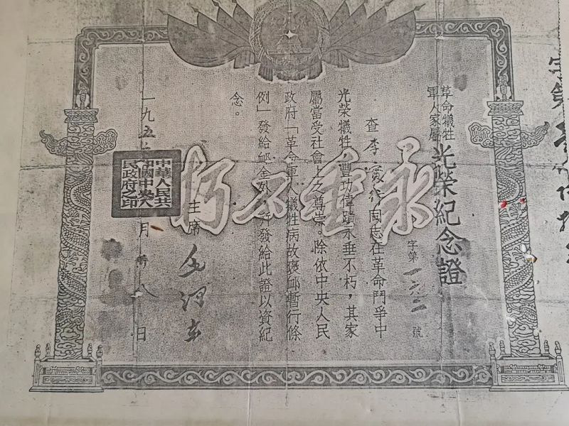 李實行犧牲軍人光榮紀念證
