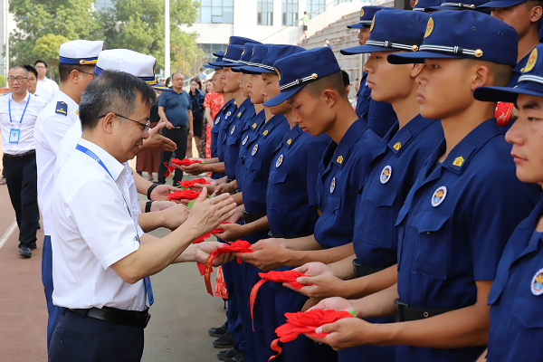 全體領導現場為消防救援專業定向班隊員佩戴紅花