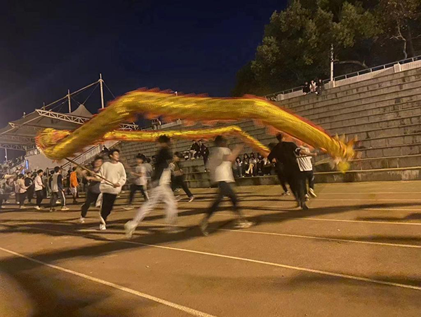 本網訊 近期,學院田徑場傳來陣陣鑼鼓聲,四條金燦燦的舞龍在教練陳祖昆的指導下,時而上下翻騰、時而左右翻飛,不斷變化出各種花樣,引得圍觀師生一陣拍手叫好。
