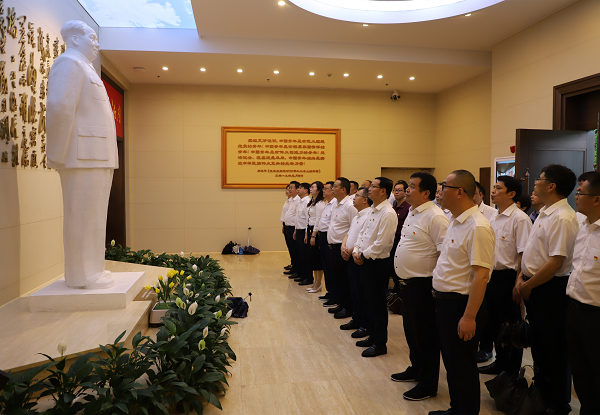 大家沿著毛澤東同志等老一輩無產階級革命家在衡陽的革命足跡,來到湘南學聯紀念館。在紀念館內毛澤東同志雕像前,全體同志行三鞠躬禮,表達對毛澤東同志深切緬懷和無限敬仰之情。走進館內,同志們深入了解湘南學聯的創辦歷史、革命意義以及夏明翰、毛澤建等革命英雄寧死不屈的英勇事跡等,追憶激情澎湃的革命歲月。