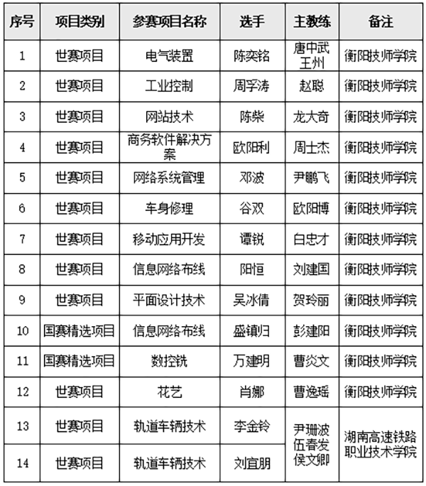 經層層選拔,衡陽派出14名選手代表湖南參加12個賽項的比賽,13名裁判執裁比賽。近年來,在市委、市政府的領導下,市人社局積極組織和舉辦各類職業技能大賽,加大技能人才的選拔和培養力度。在湖南省第一屆職業技能大賽中,我市代表團表現出色,共獲得5枚金牌、7枚銀牌、6枚銅牌以及優秀團體獎的好成績,金牌數和獎牌數均位居全省第三。此次出征,團長陳駿勉勵大家,希望全體參賽選手珍惜機會、奮勇爭先,充分展現新時代技能人才精神風貌,賽出水平、賽出風格!希望各集訓單位和教練團隊做好技術指導,強化保障服務,確保選手高標準、高質量集訓參賽!預祝衡陽代表團在天津的國賽上力創佳績,凱旋而歸!