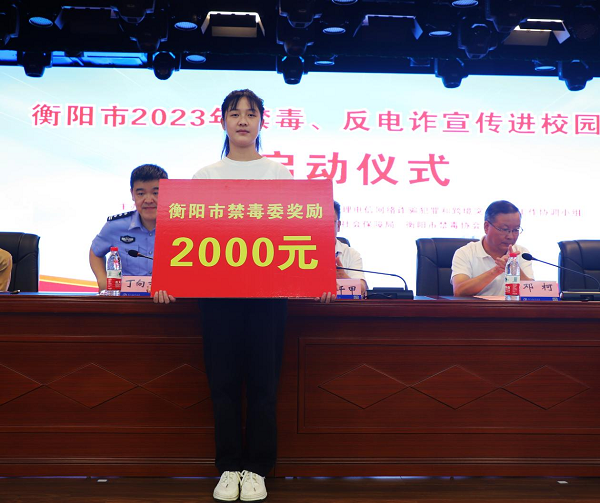 活動現(xiàn)場,衡陽市禁毒委、衡南縣禁毒委、衡陽技師學(xué)院為2022年度湖南省禁毒知識競賽一等獎和全國青少年禁毒知識競賽二等獎獲得者、我院交通工程學(xué)院學(xué)生彭曉君頒發(fā)獎金。市禁毒委副主任、市禁毒協(xié)會會長鄧柯為我院禁毒、反電詐青年志愿者隊(duì)授旗。