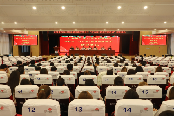 10月19日,學院舉辦吐魯番市2023未就業高校畢業生”紅石榴+就業技能” 培訓班結業典禮。學院黨委書記肖春林,衡陽市人社局黨組成員、副局長劉文文出席會議并講話,學院黨委副書記陳干甲宣讀表彰決定,市人社局職業能力建設科及學院學院職業培訓學院相關負責同志、培訓班領隊等參加。會議由學院黨委委員、副院長成朝陽主持。