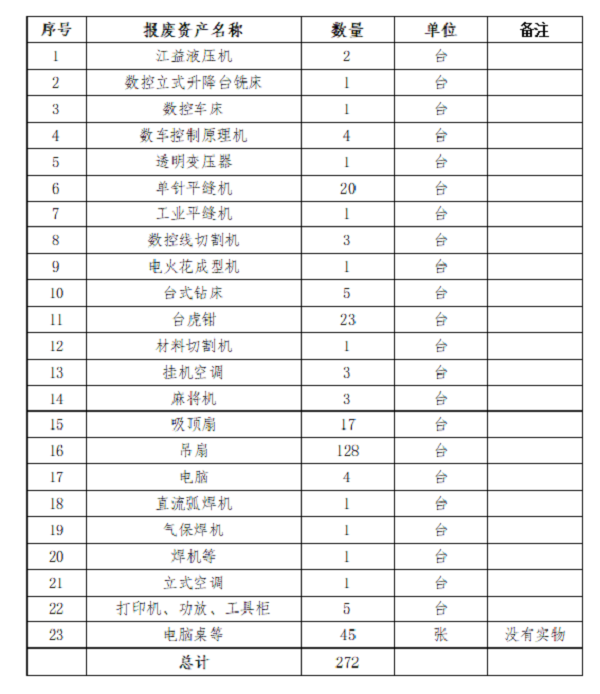 我院近期擬對資產一批(詳情見下表)進行處置,請有意向者于11月24-28日與資產管理處聯系,聯系方式:李老師15580308887。