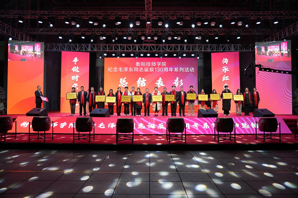 12月26日,學院在文化廣場舉行紀念毛澤東誕辰130周年系列活動總結表彰。黨委書記肖春林作總結講話。黨委副書記、院長廖與飛主持,黨委副書記陳干甲宣讀《關于衡陽技師學院紀念毛澤東誕辰130周年系列活動表彰的決定》。