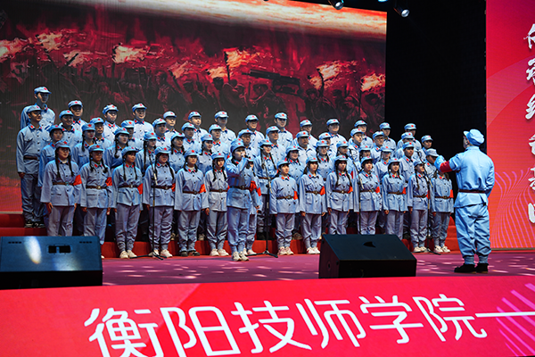 晚會通過大合唱、詩詞朗誦、微宣講等形式,再現(xiàn)了波瀾壯闊的紅色故事。《八月桂花遍地開》唱出了皖西革命老區(qū)人民的紅色傳承,讓紅色文化在新時代煥發(fā)新的光彩。《太陽最紅 毛主席最親》唱出了人民對新中國的締造者毛澤東同志的深情厚意。《北京的金山上》《四渡赤水》《唱支山歌給黨聽》《瀏陽河》《沒有共產黨就沒有新中國》等大合唱,師生用激情的歌聲贊美黨,用自己的一切來感恩黨。
