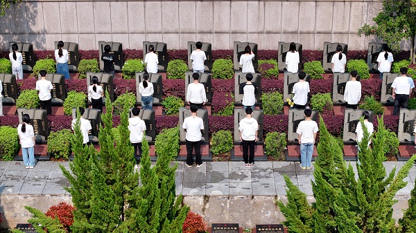 活動現場,擦拭一遍墓碑、敬獻一束鮮花、瞻仰一次紀念碑的祭奠儀式,讓青年學生感悟英雄精神,在緬懷和致敬英烈中銘記革命歷史、傳承紅色基因,并內化于心、外化于行。在革命烈士陳列館,全體人員傾聽講解員的講述,共同追憶革命先烈用生命和信仰書寫的光榮歷史。