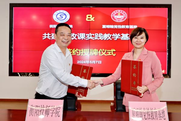 5月7日上午,衡陽(yáng)技師學(xué)院與夏明翰黨性教育基地舉行了思政課實(shí)踐教學(xué)基地簽約儀式。學(xué)院黨委書(shū)記肖春林,黨委副書(shū)記、院長(zhǎng)廖與飛,衡陽(yáng)縣委常委、組織部部長(zhǎng)、統(tǒng)戰(zhàn)部部長(zhǎng)羅斌等領(lǐng)導(dǎo)出席,衡陽(yáng)縣委組織部副部長(zhǎng)陳志峰主持儀式。