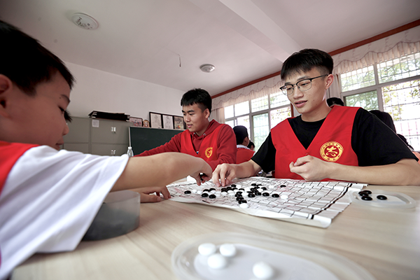 學院志愿者與孩子們一起下圍棋