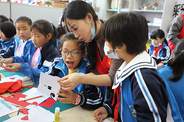 學院謝姣玉老師教孩子們剪紙