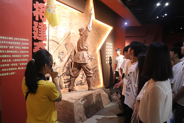 在紅色故事體驗(yàn)館內(nèi),團(tuán)員青年們學(xué)習(xí)了衡陽青年百年來在中國共產(chǎn)黨的領(lǐng)導(dǎo)下參與革命、建設(shè)、改革、復(fù)興歷程中的紅色故事,了解革命先輩的青春歲月。