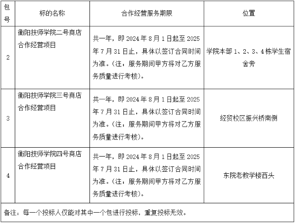 華新項目管理集團有限公司受衡陽技師學院的委托,對衡陽技師學院一號、二號、三號、四號商店合作經營項目(第二次)進行院內自主招標,邀請符合資質條件的投標人來參加投標。