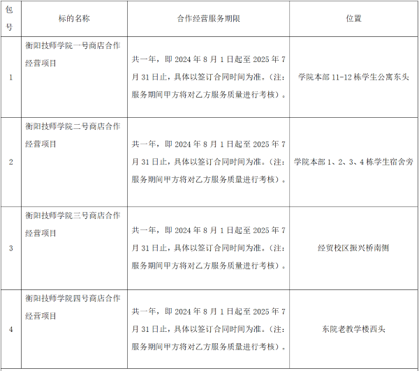 項目名稱:衡陽技師學院一號、二號、三號、四號商店合作經營項目