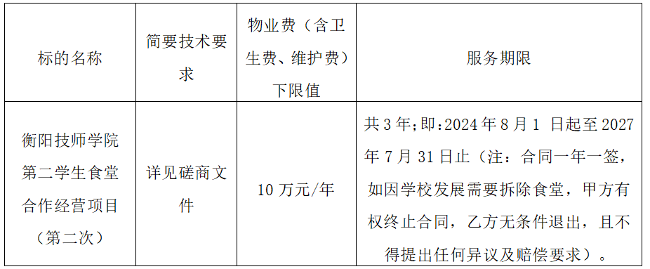 采購項目名稱:衡陽技師學院第二學生食堂合作經營項目(第二次)