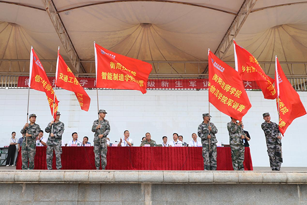 學院黨委副書記、院長廖與飛宣布新生軍訓啟動