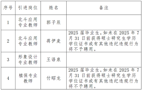 根據(jù)《衡陽市屬高職院校2025年高層次和急需緊缺專業(yè)技術(shù)人才引進公告》的規(guī)定,經(jīng)報名、資格審查、考試考核、體檢、考察等程序,確定郭子辰、蔣伊麥、王語泉、付昭龍同志為衡陽技師學(xué)院擬聘用人員,現(xiàn)予以公示。