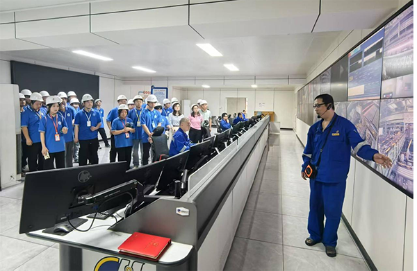師生們參觀了衡鋼340廠的全自動化鋼管生產線,詳細了解了從原材料到鋼管成品的制造全流程?!霸瓉礓摴苌a已經這么智能了!”看著自動化、智能化機械精準完成鉆孔工序,學生們興奮不已。全國勞動模范陳育偉現場講解了自動化、智能化生產線的運作原理,讓師生們切身感受到現代工業制造的創新魅力。