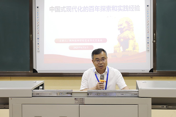 在專題黨課環(huán)節(jié),肖春林以“中國式現(xiàn)代化的百年探索和實(shí)踐經(jīng)驗(yàn)”為題,從發(fā)展歷程、內(nèi)涵特征、實(shí)踐路徑等方面闡述了中國式現(xiàn)代化的理論成果。他通過黨史案例、國際熱點(diǎn)和本地實(shí)踐,生動(dòng)展現(xiàn)了中國式現(xiàn)代化的獨(dú)特優(yōu)勢(shì)和時(shí)代價(jià)值,引發(fā)學(xué)員共鳴。