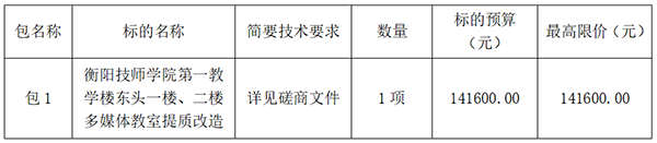 衡陽技師學院的第一教學樓東頭一樓、二樓多媒體教室提質改造項目進行采購,現邀請合格投標人參加投標。