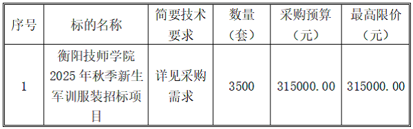 2.采購項目名稱:衡陽技師學院2025年秋季新生軍訓服裝招標項目