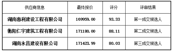 成交供應(yīng)商名稱:湖南惠利建設(shè)工程有限公司