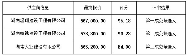 成交供應商名稱:湖南煜翔建設工程有限公司