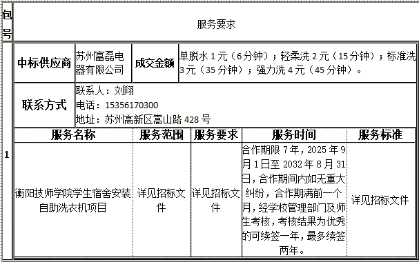 衡陽技師學院的衡陽技師學院學生宿舍安裝自助洗衣機項目公開招標采購于2025年08月12日結束,現將中標(成交)結果公告如下:
