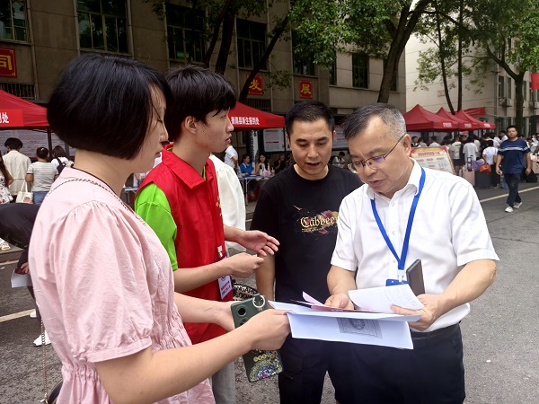 “家長(zhǎng),您好!資料復(fù)印好了,您拿好。”機(jī)關(guān)第一黨支部黨員志愿者羅振南正在為新生及家長(zhǎng)免費(fèi)復(fù)印入學(xué)報(bào)到資料。這是學(xué)院黨員教師發(fā)揮先鋒模范作用助力迎新工作的縮影。