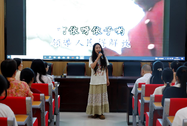 “家鄉(xiāng)有支歌,一支難忘的歌。你唱過我也唱過,千家萬戶都唱過......”校園十佳歌手李敏一首民歌《瀏陽河》拉開學(xué)院推普周活動(dòng)序幕。悠揚(yáng)婉轉(zhuǎn)的歌聲伴著標(biāo)準(zhǔn)的發(fā)音,讓在場師生在享受音樂的同時(shí),直觀感受語言表達(dá)的藝術(shù)感染力。