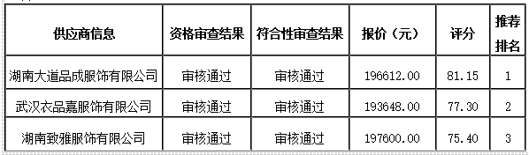 衡陽技師學院遴選2025級學生實訓工裝供應商公開招標采購于2026年03月05日結束,現將中標(成交)結果公告如下: