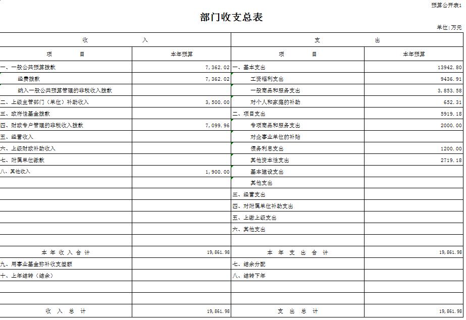 2020年部門預算編報范圍包括院本部及所屬二級預算單位。收入為19861.98萬元;支出為19861.98萬元。