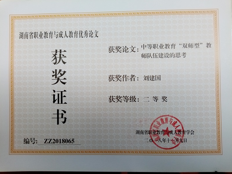 在湖南省2018年度技工教育和職業(yè)培訓(xùn)優(yōu)秀論文評審中獲一等獎(jiǎng)3篇、二等獎(jiǎng)3篇、三等獎(jiǎng)2篇;在湖南省/衡陽市職業(yè)教育與成人教育論文評審中,獲省級二等獎(jiǎng)2篇,三等獎(jiǎng)3篇;市級一等獎(jiǎng)7篇、二等獎(jiǎng)4篇、三等獎(jiǎng)10篇;在市經(jīng)濟(jì)學(xué)會(huì)2018年度優(yōu)秀論文評審中獲特等獎(jiǎng)1篇、一等獎(jiǎng)1篇、二等獎(jiǎng)3篇。