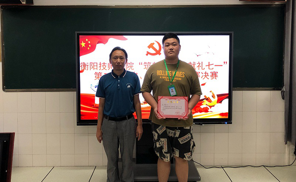 公共課部主任鄧小禮(左)為個(gè)人一等獎(jiǎng)選手頒獎(jiǎng)