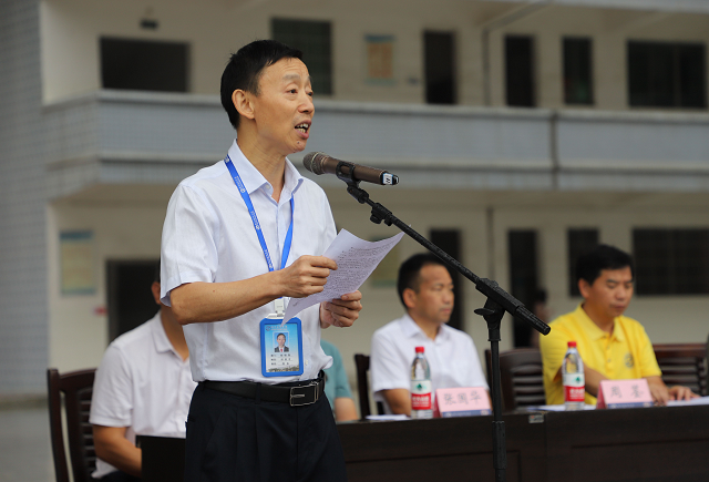 在莊重的國歌聲中,大會拉開帷幕。學院院長邱家長首先代表學院對新入校的新生表示熱烈的歡迎,對大力支持學校軍訓工作的全體教官們表示衷心的感謝。他指出,軍訓是開學的第一課,作為當代青年學生,要具有愛國主義情懷,樹立正確的政治信仰和崇高的理想,通過軍訓,接受國防知識教育,學習軍人愛國風采,樹報國之志;要增強軍訓自覺性,以飽滿的熱情,昂揚的斗志接受考驗,學習軍人敢于拼博、勇于吃苦的品質,并延續(xù)到今后學習生活中;要把學習軍人嚴明的紀律、過硬的作風和自覺遵守學校規(guī)章制度結合起來,培養(yǎng)軍人的氣質,軍人的素養(yǎng),軍人的優(yōu)良作風和團隊精神。