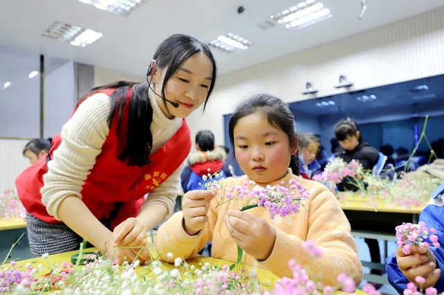 本網(wǎng)訊 12月16日,衡陽技師學(xué)院支教老師來到南岳金月完小,帶領(lǐng)孩子們一起插花、剪紙、舞龍、踢足球,培養(yǎng)和提升他們藝術(shù)興趣和素養(yǎng)。