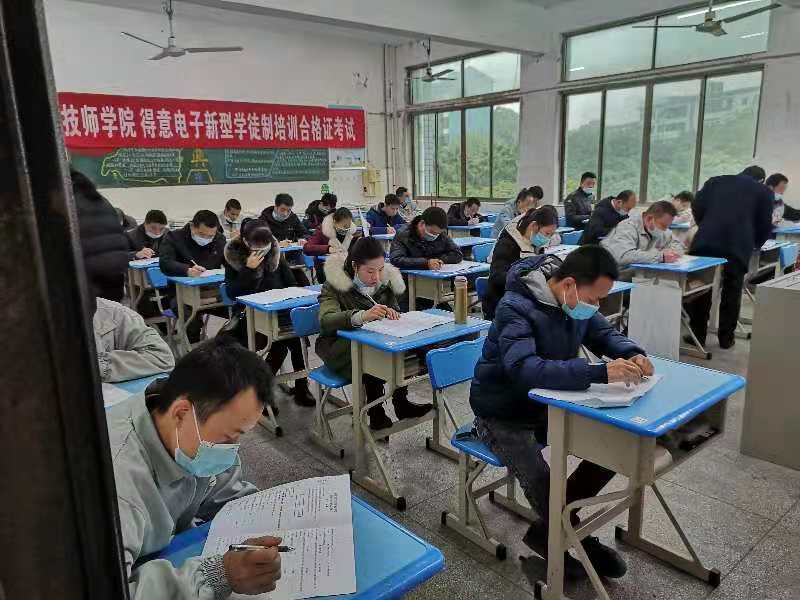 2019年,我院與湖南紅海人力資源有限公司衡陽分公司、金杯電工衡陽電纜有限公司、特變電工集團有限公司衡陽電氣分公司、衡南得意精密電子工業有限公司和湖南華菱汽車有限公司等五家公司開設了新型學徒制培訓班,經過一年的培訓,2020年12月,我院舉行結業考試。考點分別設在特變電工、得意電子、衡陽技師學院,考試中市人社局職業能力建設處、衡陽市紀委全程監督。