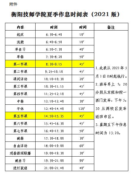 附件:衡陽(yáng)技師學(xué)院夏季作息時(shí)間表(2021版)