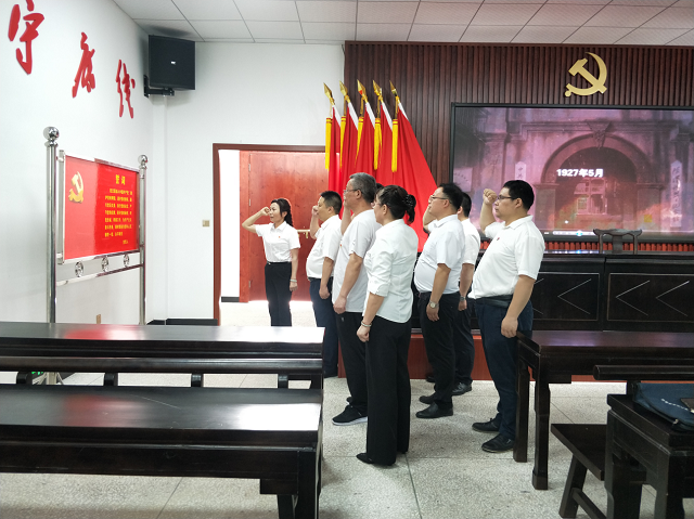 “我志愿加入中國共產黨……”大家在蕭石月故居里,高舉右手,莊嚴宣誓,重溫入黨時的決心和信念。追憶革命精神,緬懷紀檢監察戰線革命先烈,使命感油然而生。