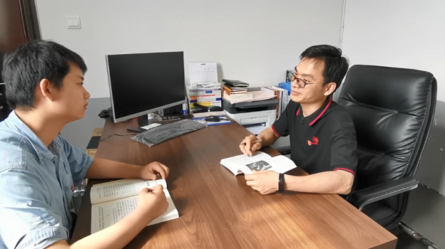 陳君同志指導系部青年教師場景