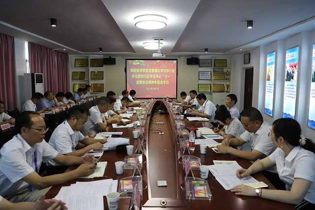 讀書班采取收看收聽?wèi)c祝中國共產(chǎn)黨成立100周年大會實況、個人自學(xué)、專題輔導(dǎo)、研討交流和現(xiàn)場教學(xué)相結(jié)合的方式進行。學(xué)院黨委班子成員、各部門負責(zé)人、系黨總支書記參加學(xué)習(xí)。