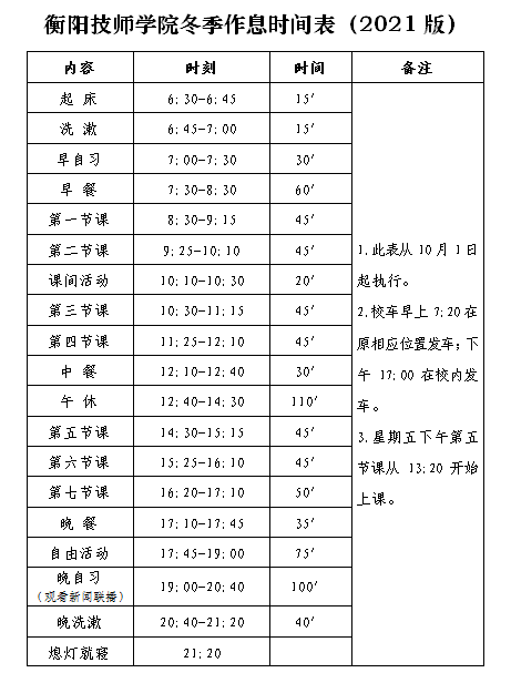 七、10月1日起執行冬季作息時間(作息時間表附后)。