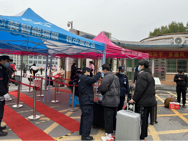 2月20日開學當天,學院保衛處在各校門口設置警戒線,開通8條檢測通道,把好疫情防控第一道防線;對所有入校人員進行三碼一單核查和體溫檢測,入院學生自覺佩戴口罩,持48小時核酸檢測報告,攜帶行李消毒后方可入內;設有疫情防控臨時處置點,如有異常情況一經查實,立即向有關部門報告。
