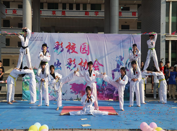隨著兩位主持人的出場,期待已久的社團(tuán)文化節(jié)正式開始。吉他協(xié)會的《七里香》旋律優(yōu)美;跆拳道的《跆風(fēng)來襲》的少年們讓現(xiàn)場的掌聲此起彼伏;魅力四射的模特秀更是讓現(xiàn)場歡呼雀躍;舞蹈協(xié)會的《yes!Ok!》展現(xiàn)了少女們的青春洋溢;動漫協(xié)會兩曲舞蹈將現(xiàn)場的氣氛推向高潮。