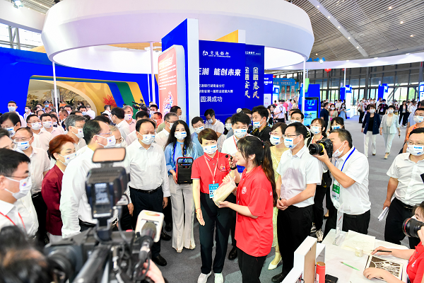 大賽期間同步開展了“技能中國行2022——走進湖南”系列活動,衡陽技師學院“非遺紙雕燈”項目作品和現場直播吸引了許多過往觀眾,省委副書記、省長毛偉明一行察看了展示產品,聽取了項目情況簡介,并對學院師生在傳承中創新的做法給予成分肯定。“這是我們運用南岳剪紙和非遺紙雕結合現代燈具研發的紙雕燈產品,可以當小夜燈、氛圍燈,也可以作為一個裝飾品。和南岳剪紙不同的是,非遺紙雕在制作時使用的是雕刻手法……”衡陽技師學院19廣告技師1學生鄭淑芳正在向來來往往的觀眾講解。