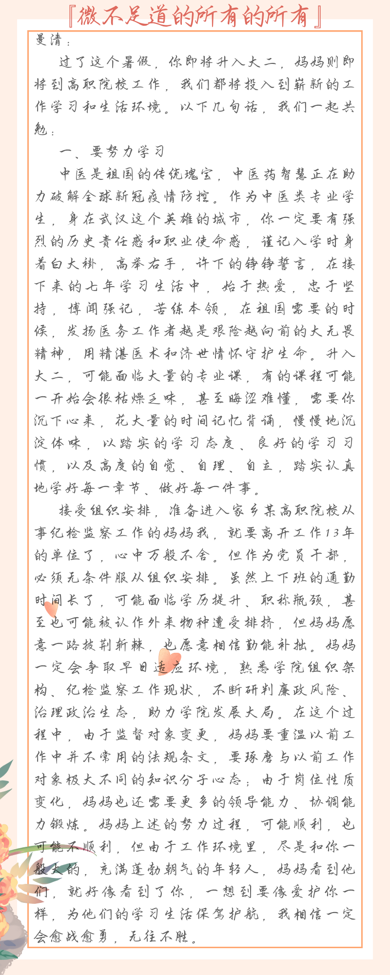 清廉學校——書記、院長評家書(五)|紀委書記王晨旭同志評家書:義無反顧的長長久久