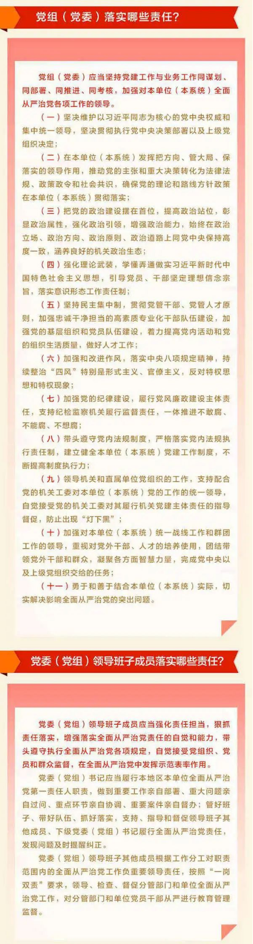 圖解:落實全面從嚴治黨主體責任有哪些內容——黨組(黨委)落實哪些責任?黨委(黨組)領導班子成員落實哪些責任?