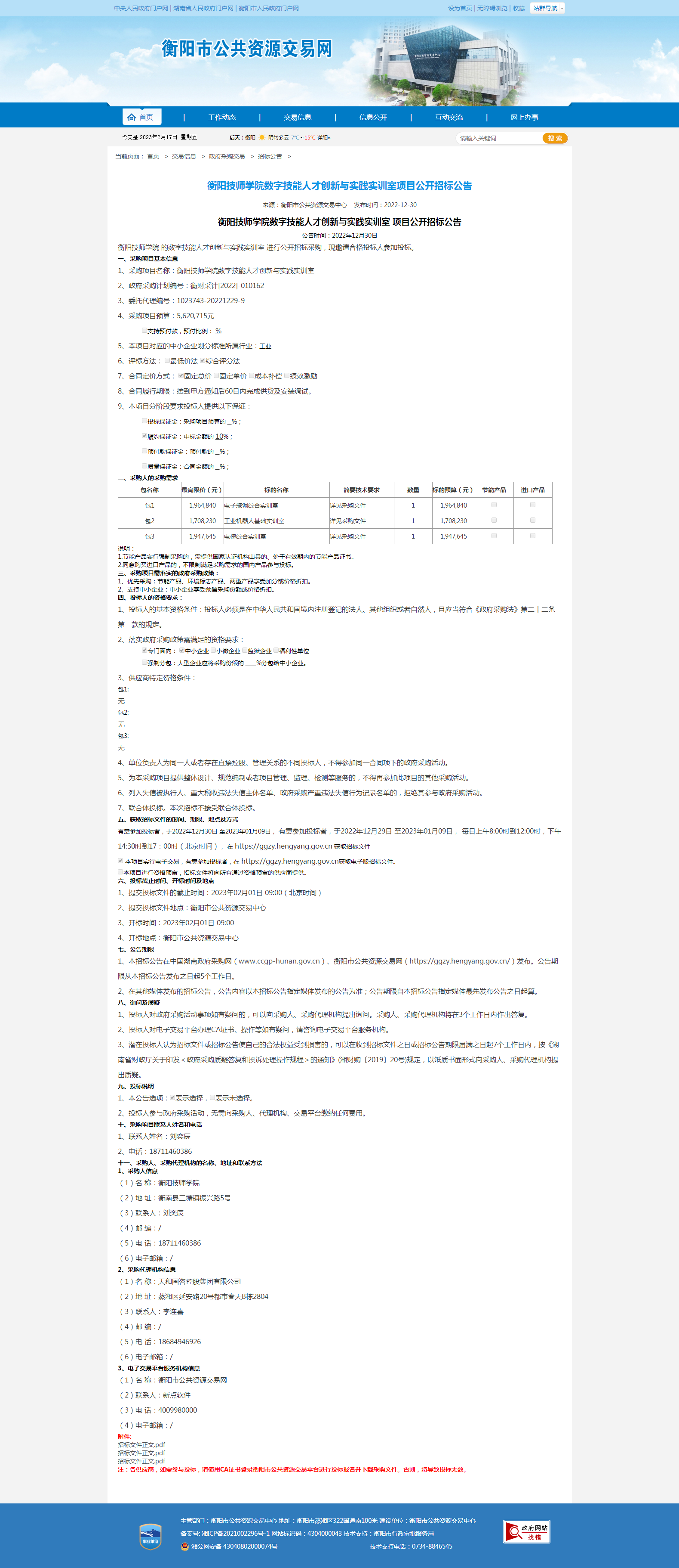 衡陽技師學院數字技能人才創新與實踐實訓室項目公開招標公告